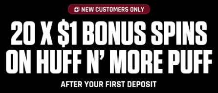 By signing up using the code SPINS you will be eligible to receive 20 X $1 bonus spins on Huff n' More Puff! Simply make your first time deposit of $10 or more and then head to the game - your spins will be ready and waiting!
