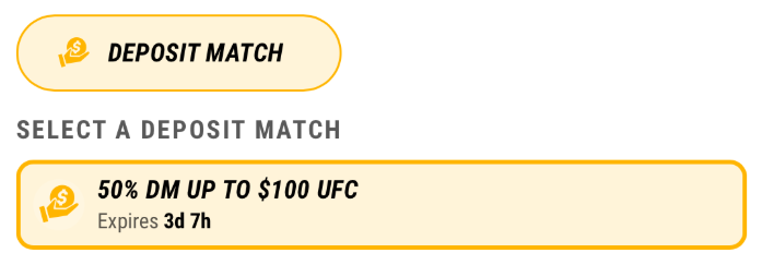 As you can see in the 'My Offers🔥' section below, the $100 bonus can be redeemed by placing $100 worth of cash bets while using the Deposit Match token (even though we deposited $200 as per the 50% deposit match).
