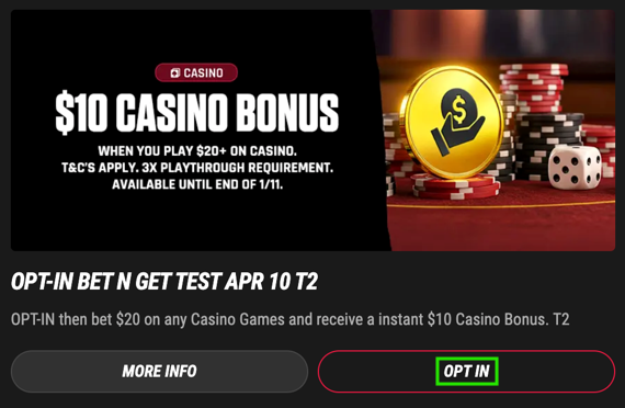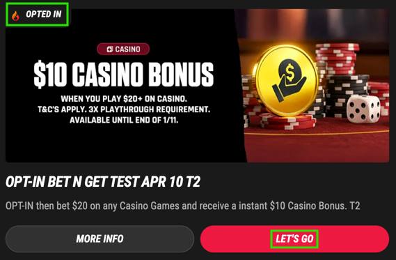 Click on the promotion tile and then click on the 'OPT IN' button. After you've clicked it, you should find the the tile now displays '🔥OPTED IN'.