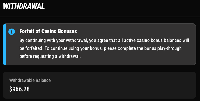 PointsBet Help Page Withdrawals Withdrawals - General Information I've got a casino bonus in my account - what will happen if I make a withdrawal? If you make a withdrawal while you have an active casino bonus, the bonus will be automatically cancelled.