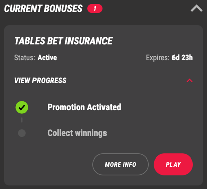 In your Rewards section, you will find that your promotion is activated, however, it will not display any progress. This is because your win/loss position is constantly changing.