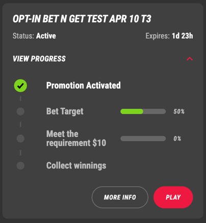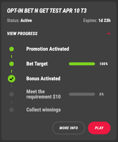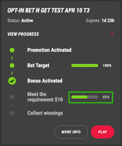 Yes, you can track your progress in the Rewards section. Find the relevant promotion in your 'Current bonuses' section.