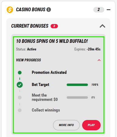 For more information, head to your Rewards section and review your Casino Bonus section.